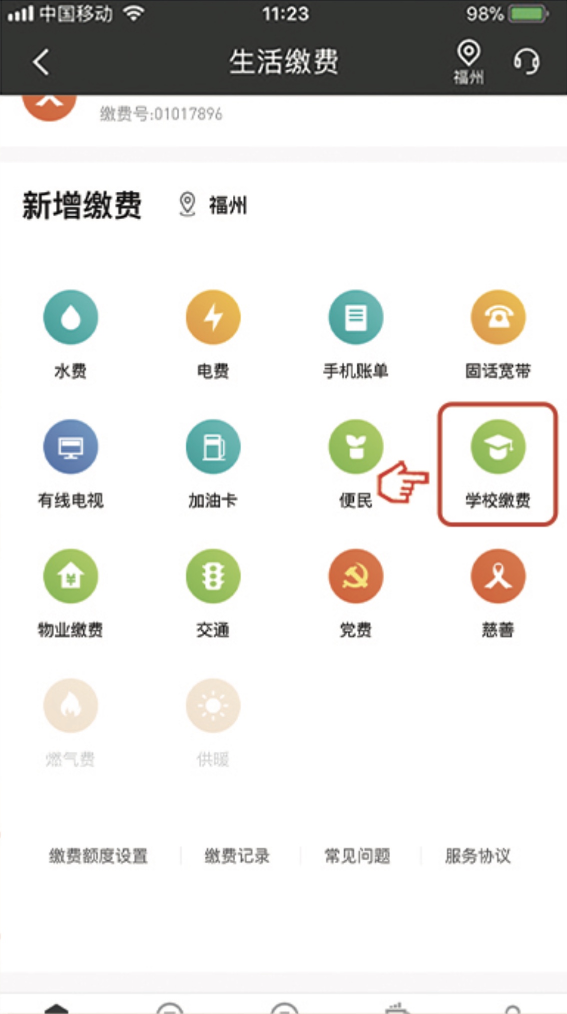 返回首頁后點擊下方“生活”頻道中“生活繳費”按鈕
