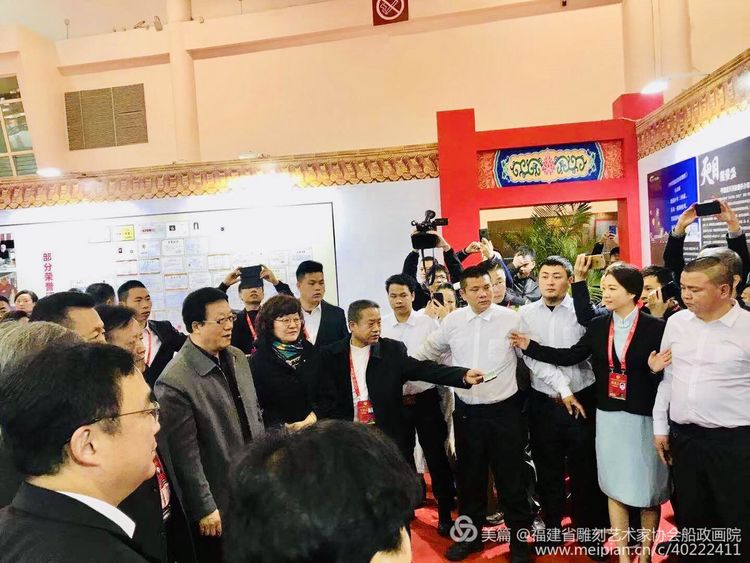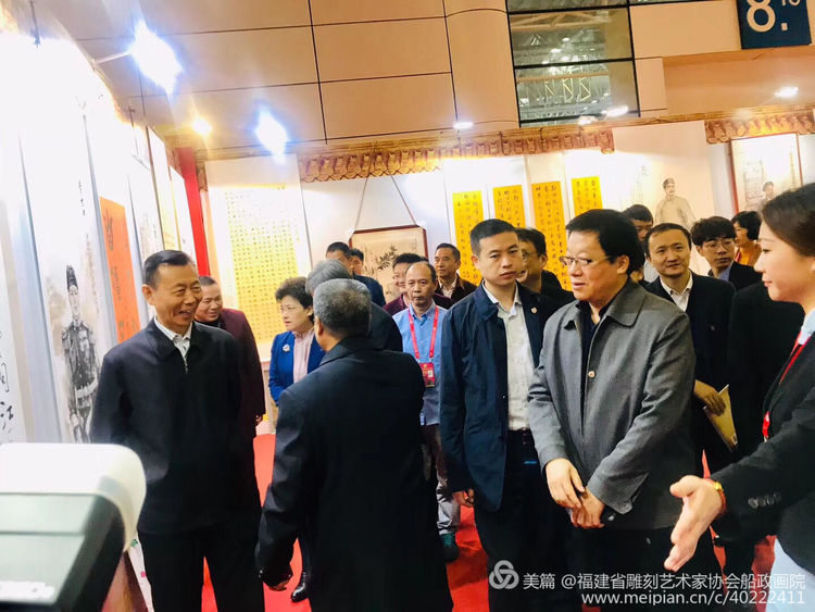 全國政協副主席、民盟中央常務副主委陳曉光、中共福建省常委、統戰部長邢善萍、全國人大常委會委員、民盟中央專職副主委張平、福建省政協副主席、福建省民盟主委阮詩瑋、民盟中央宣傳部部長曲偉、福州市委常委、統戰部部長陳曄以及全國各省、福建各地與會有關領導參加完在福州海峽國際會展中心舉辦的中國世界文化遺產(福州)高峰論壇后移步至首屆船政文化創作大賽獲獎作品展廳現場,對此次首屆船政文化書畫作品和船政精神表示高度贊賞,福建省雕刻藝術家協會船政畫院院長俞夢彥,福建省雕刻藝術家協會船政畫院執行院長陳文漢,福建省雕刻藝術家協會船政畫院常務副院長邱清崇,福建省雕刻藝術家協會會長陳文榮以及參展藝術家、社會各界群眾300多人參加了開幕式。