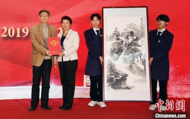 著名藝術家沈巖先生(左一)向福建船政交通職業學院贈送書畫作品