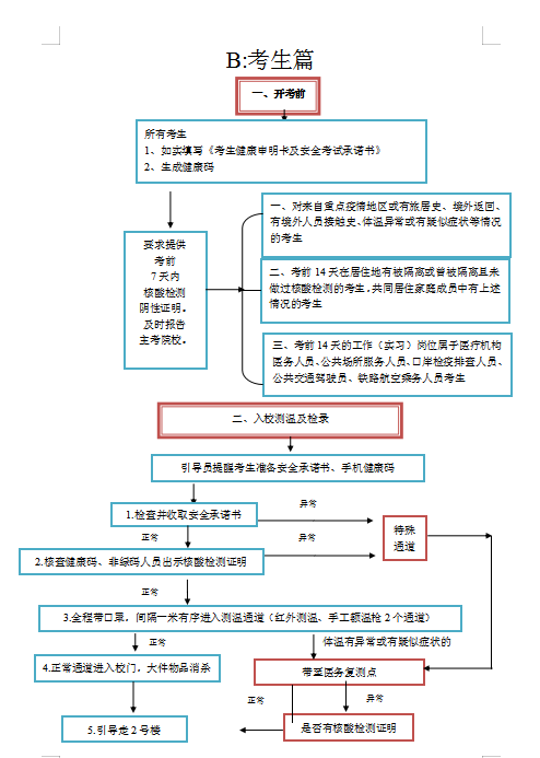 2.來自重點疫情地區或有旅居史、境外返回、境外人員接觸史、體溫異?;蛴幸伤瓢Y狀等情況,考前14天曾被隔離或曾被隔離未做過核酸檢測、共同居住家庭成員有上述情況的考生,考前14天的工作(實習)崗位屬于醫療機構醫務人員、公共場所服務人員、口岸檢疫排查人員、公共交通駕駛員或鐵路航空乘務人員的考生,上述考生須提供考前7天內核酸檢測陰性證明后方可進入學校,無提供核酸證明者不得進入校園!