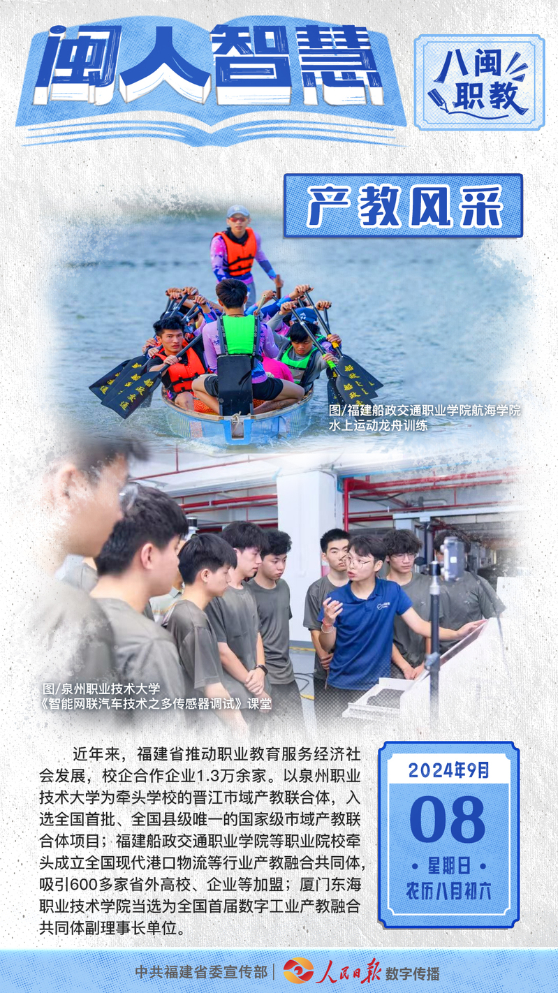 近期,中共福建省委宣傳部和人民日報數字傳播共同出品的《閩人智慧》日簽欄目特別策劃推出八閩職教系列,圍繞院校風采、產教風采、學生風采、服務風采、創業風采、工匠風采等主題展現福建如何賡續優良傳統,培養高素質技術技能人才,讓職業教育成果在八閩大地落地開花。
