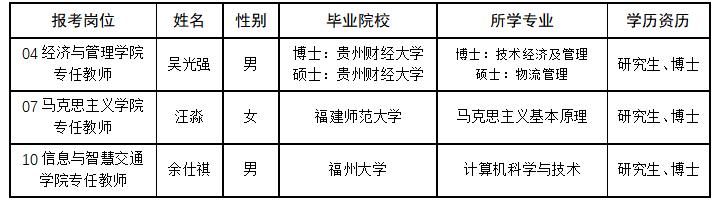 按照《關于印發<福建省省屬事業單位公開招聘工作人員考試暫行辦法>的通知》(閩人發〔2006〕11號)和《2025年福建船政交通職業學院招聘總量控制高層次人才方案》等文件要求,經報名、面試、體檢、考核等有關程序,經學校會議集體研究,確定吳光強等3人為部分崗位擬聘用人員,現予以公示。